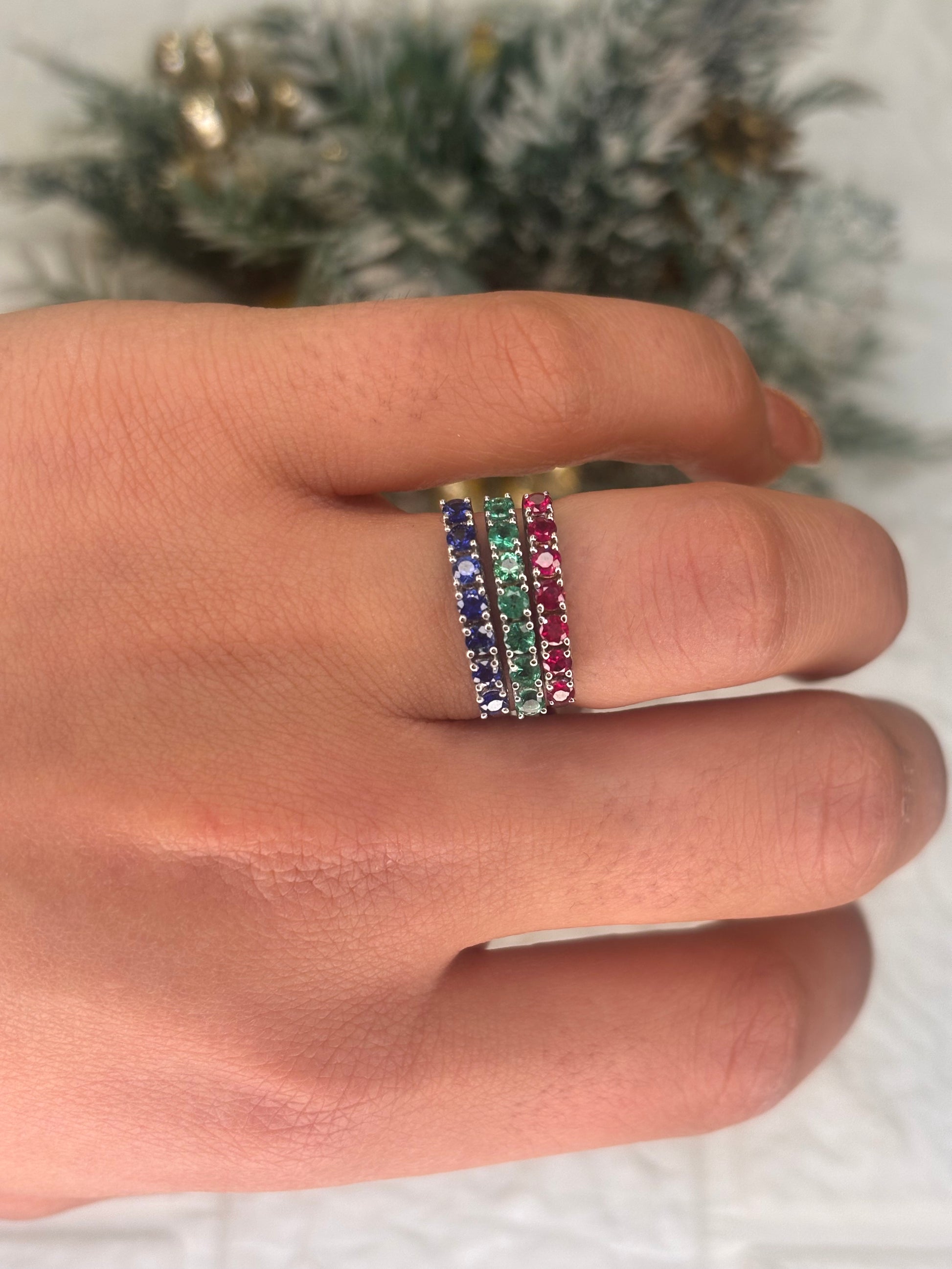 Anello Veretta 7 Pietre Oro 18K smeraldo rubino e zaffiro PROMESSE GIOIELLI
