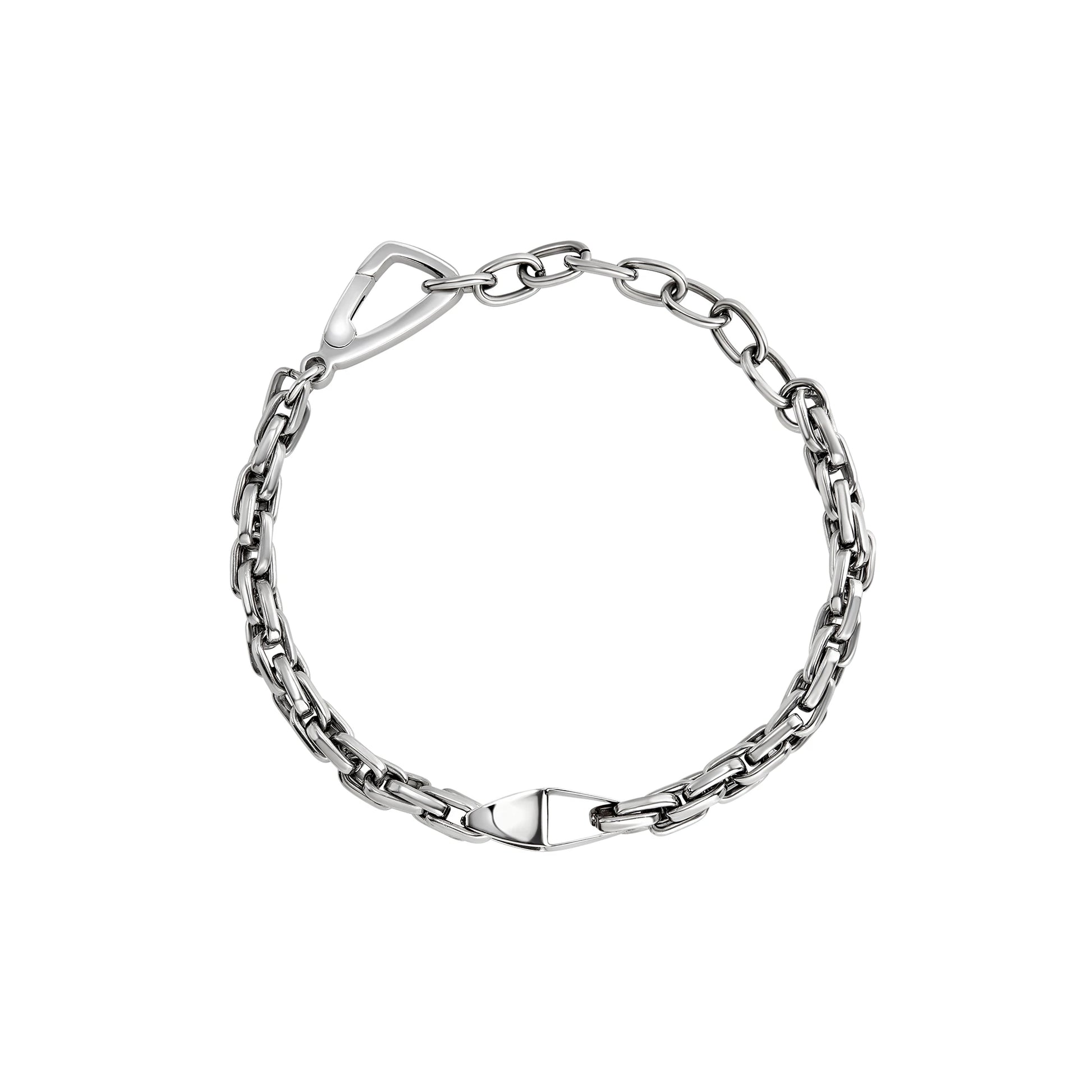 L’iconica collezione Hypnotic oggi viene declinata anche nella versione maschile. Il bracciale affascina con il suo design moderno e deciso: la catena in acciaio dal richiama la texture della pelle di serpente, mentre l’elemento centrale evoca la forma della sua testa, simbolo di forza e fascino senza tempo. La chiusura a moschettone consente di regolarne facilmente la lunghezza, per un look sempre su misura.