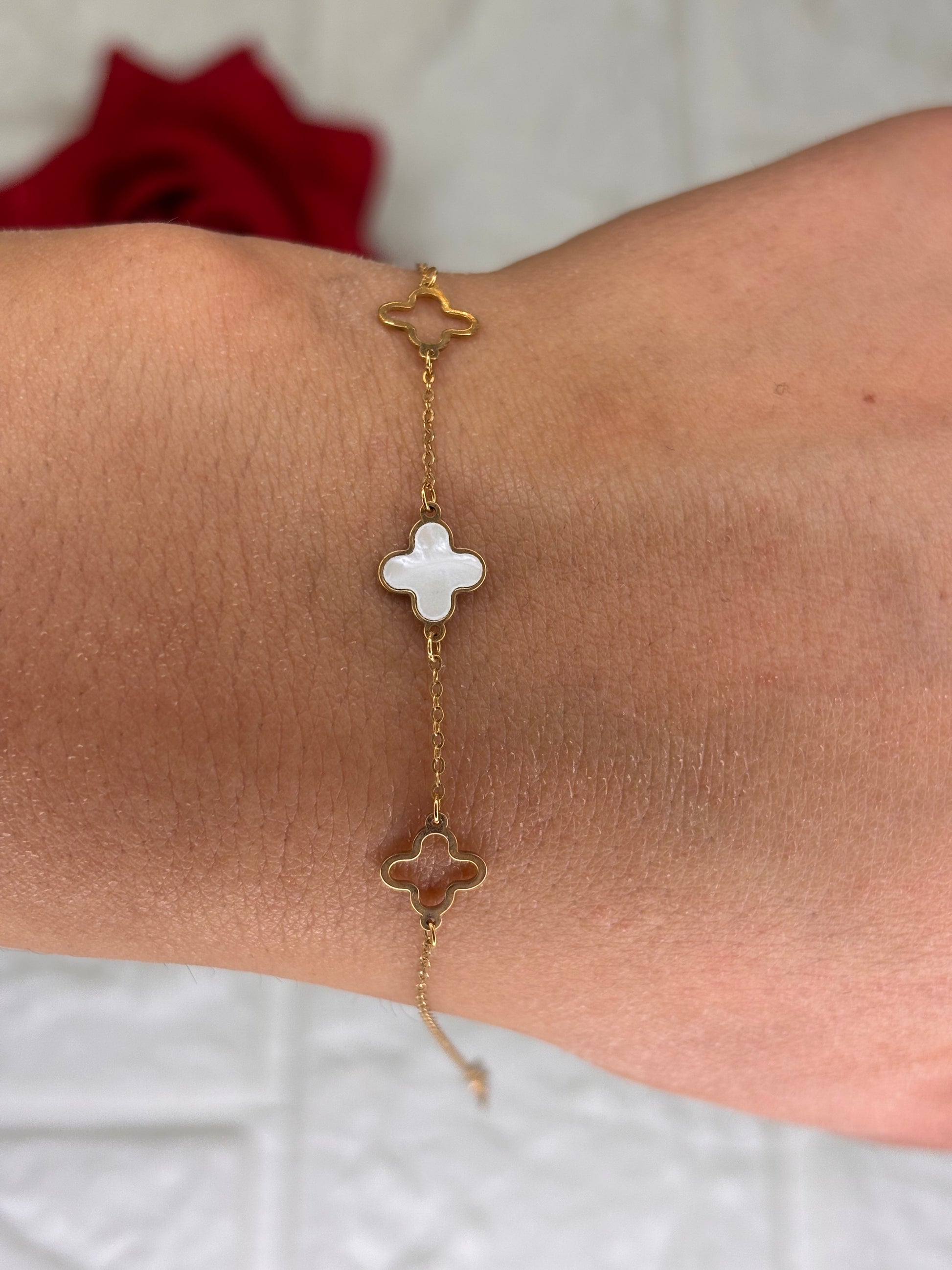Bracciale donna quadrifoglio smaltato bianco