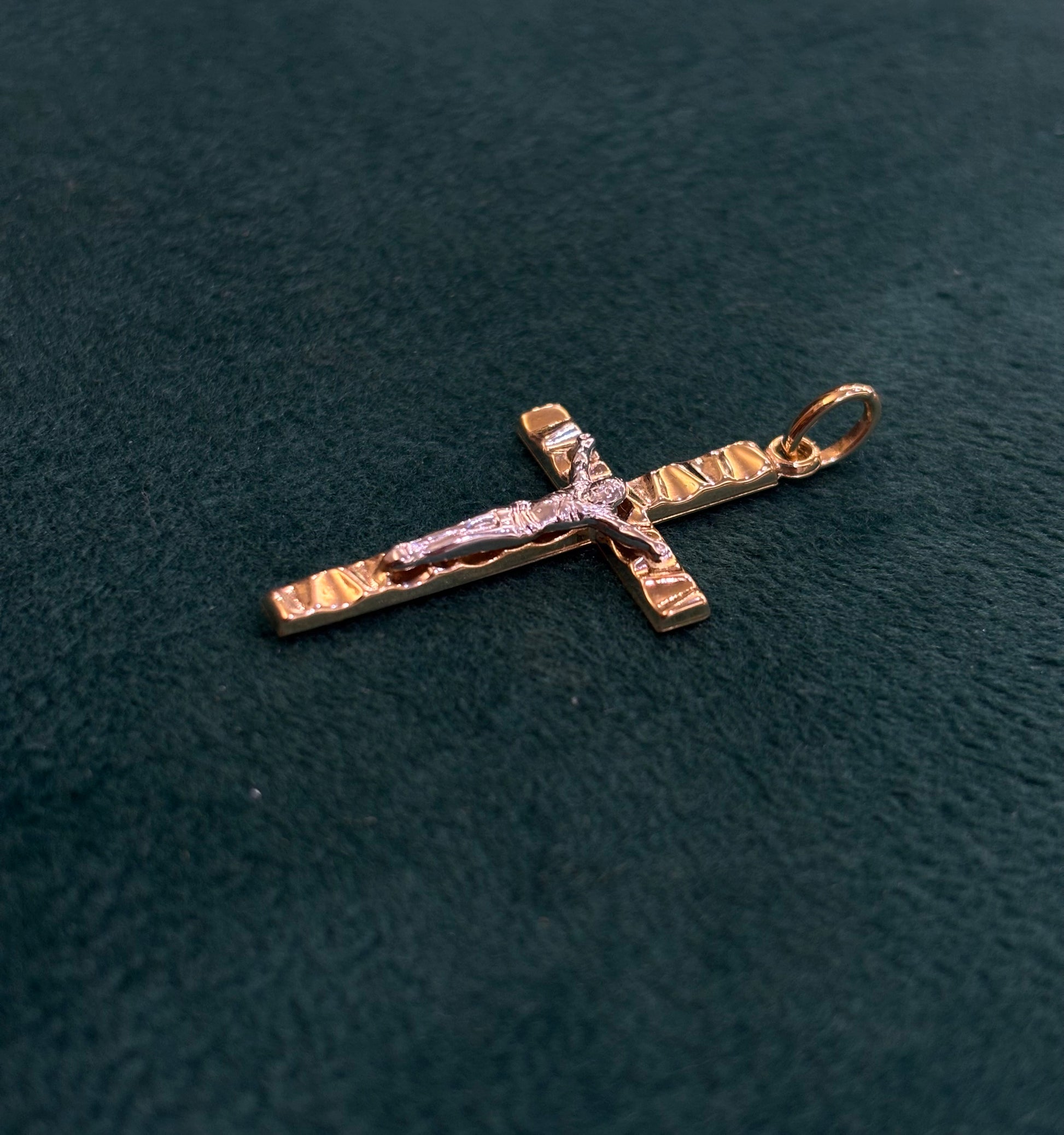 Ciondolo Croce con Cristo Oro Giallo e Bianco 18 Carati