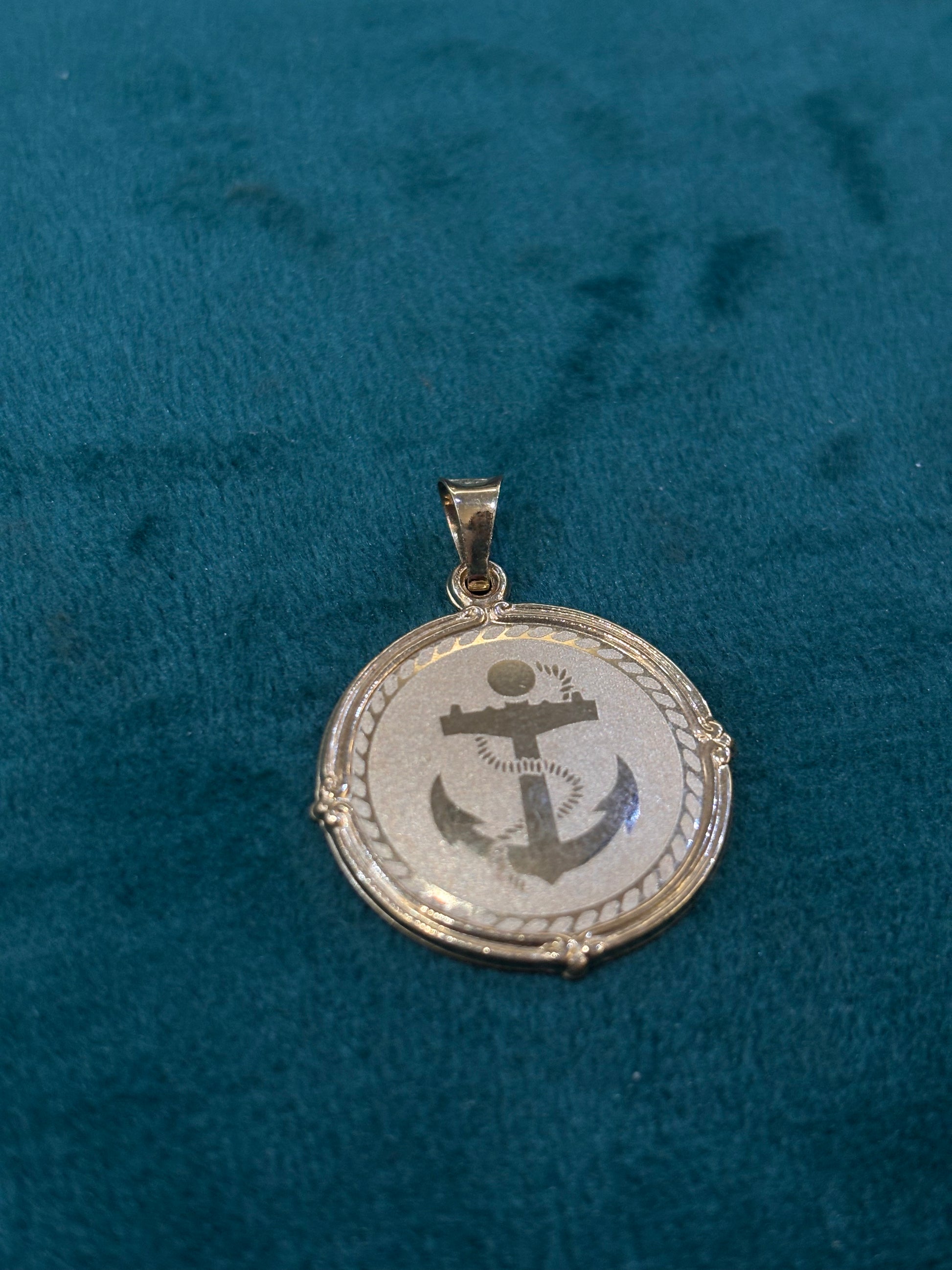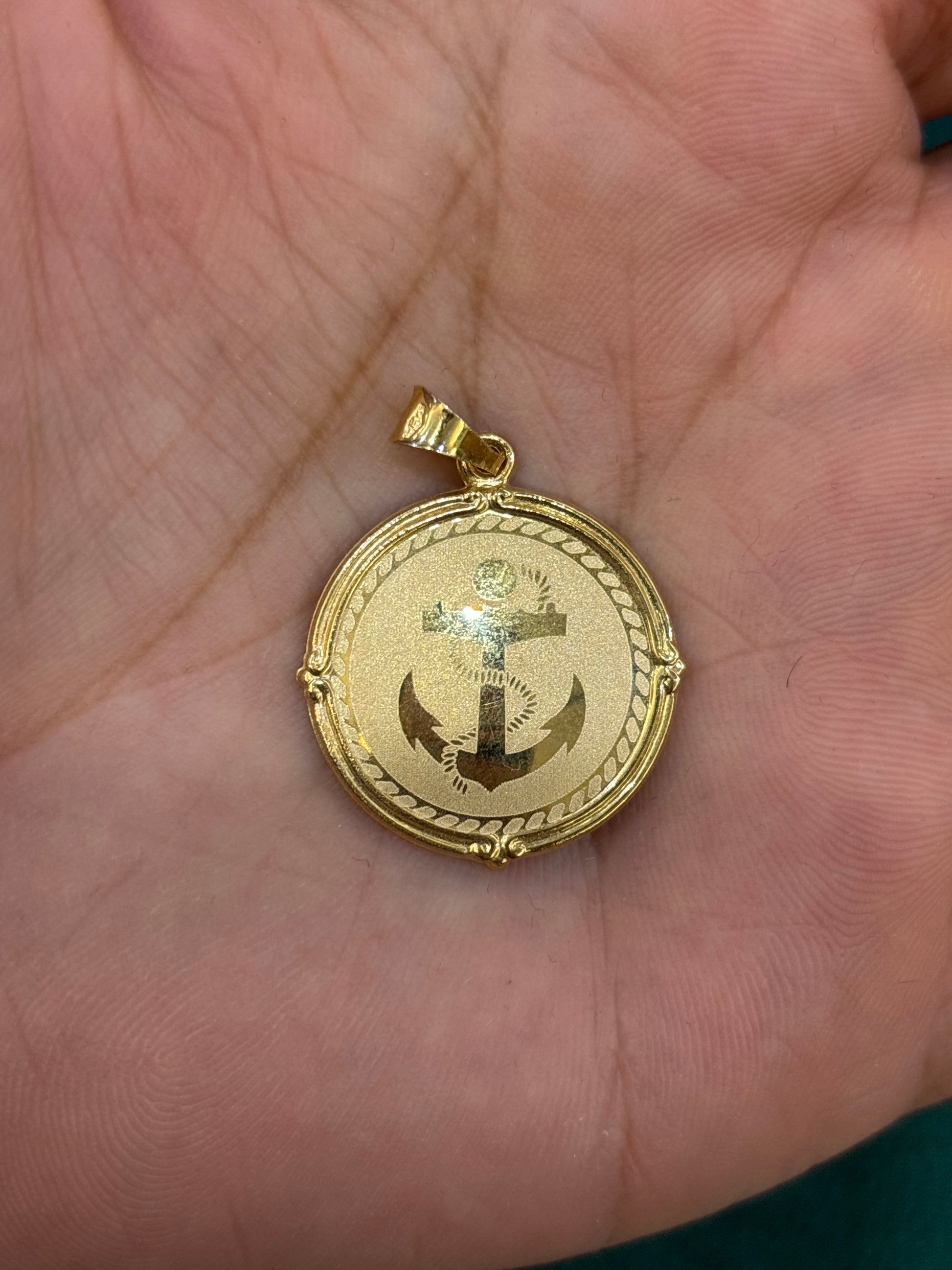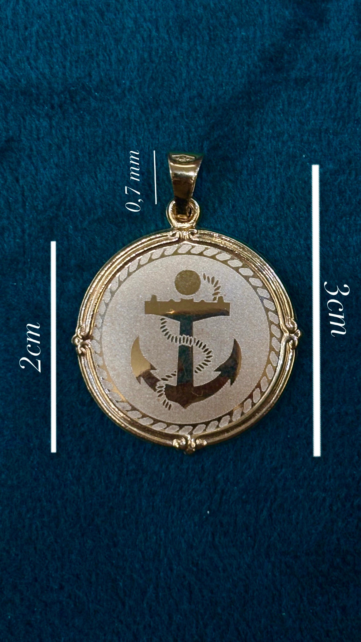 Ciondolo Medaglia tonda con Ancora Oro Giallo18 Carati cod. 03