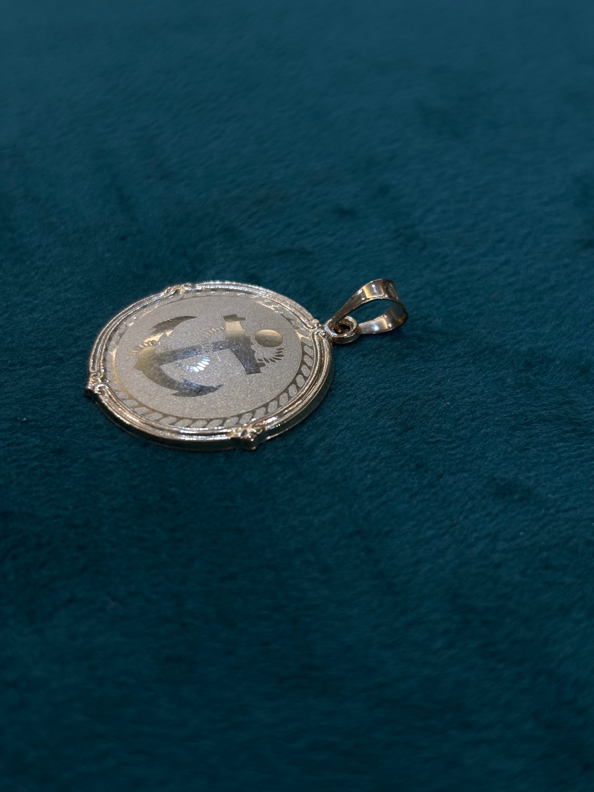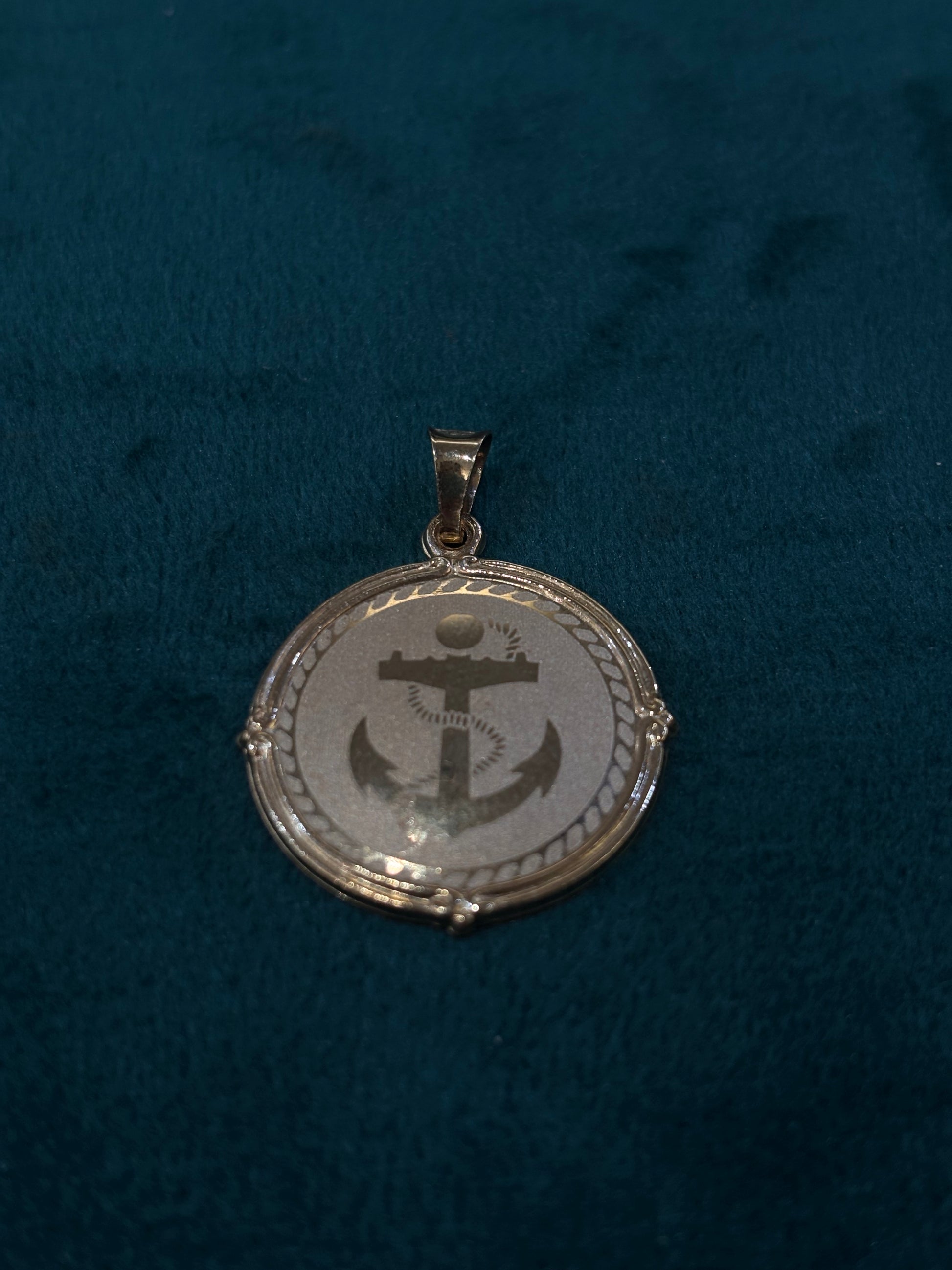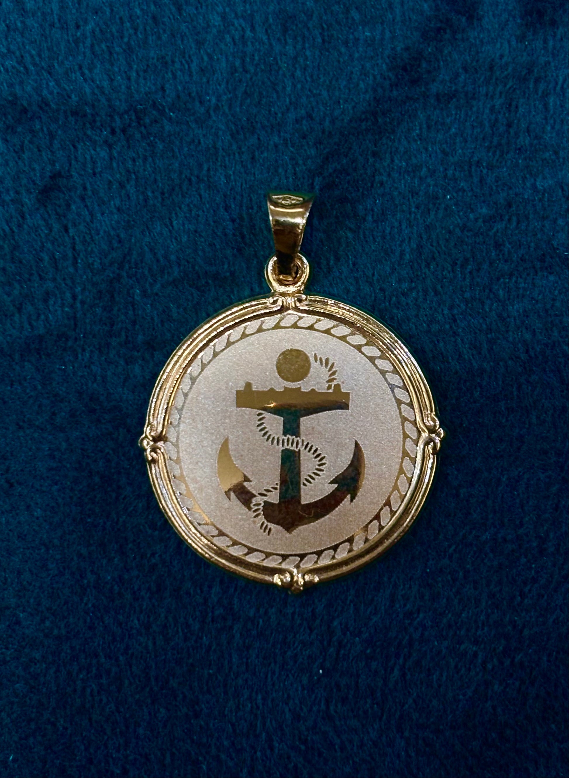 Ciondolo Medaglia tonda con Ancora Oro Giallo18 Carati cod. 03
