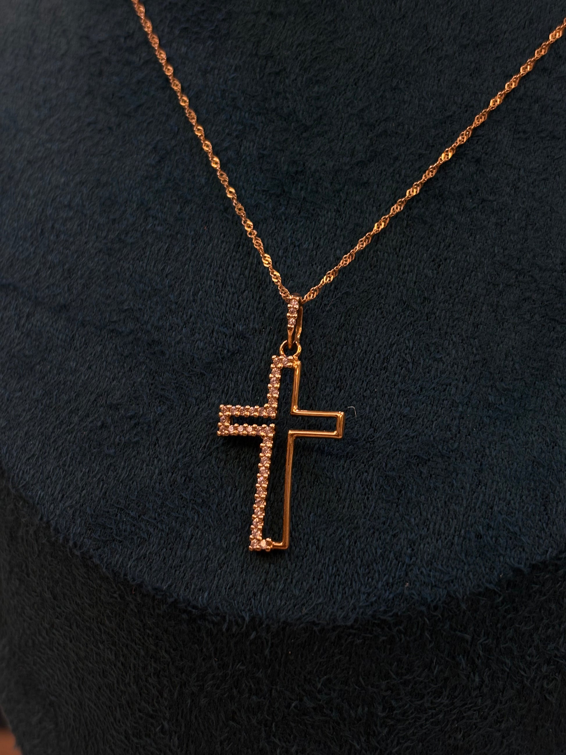 Collana crocifisso con metà fascia di zirconi oro 18 carati