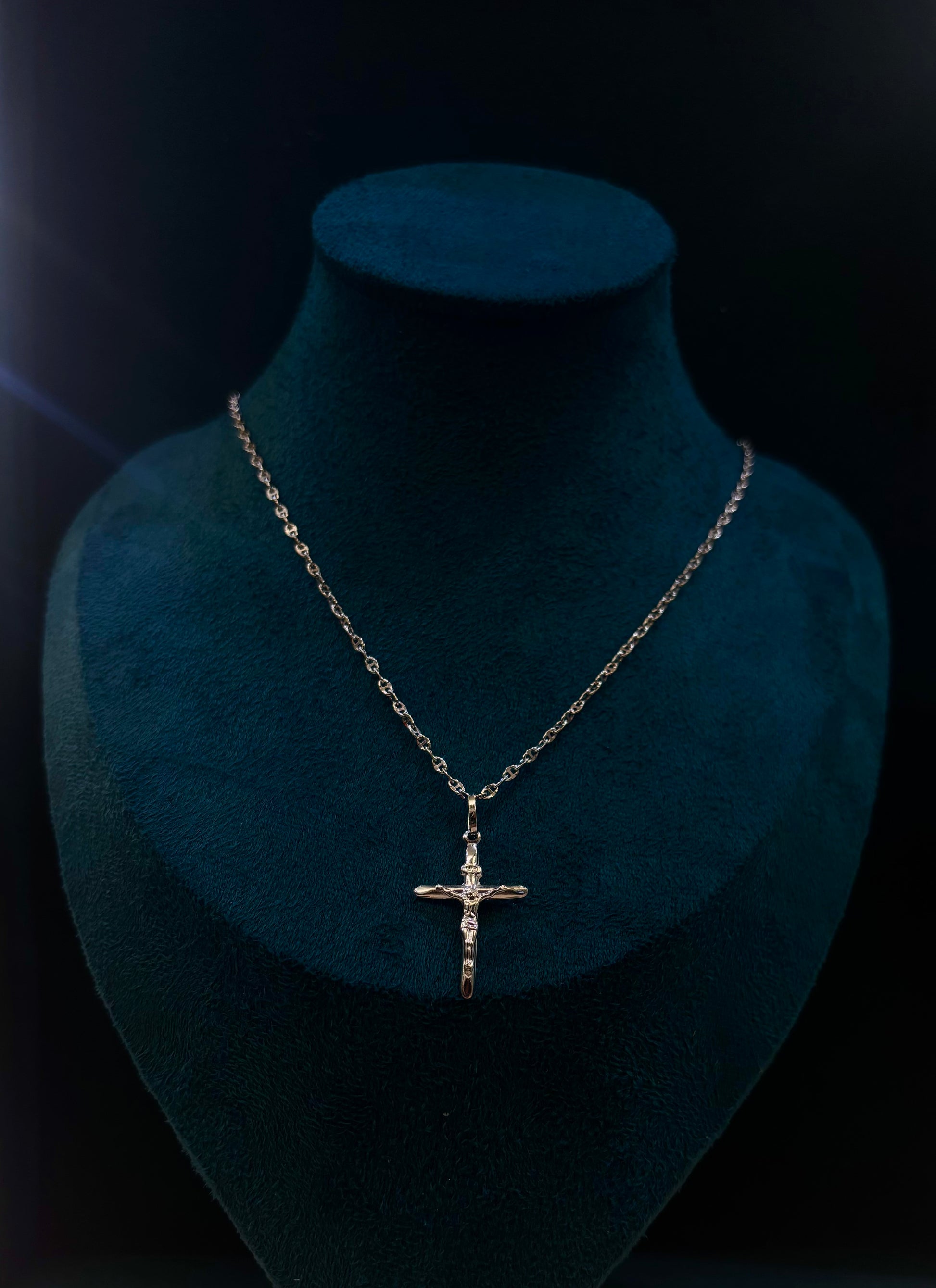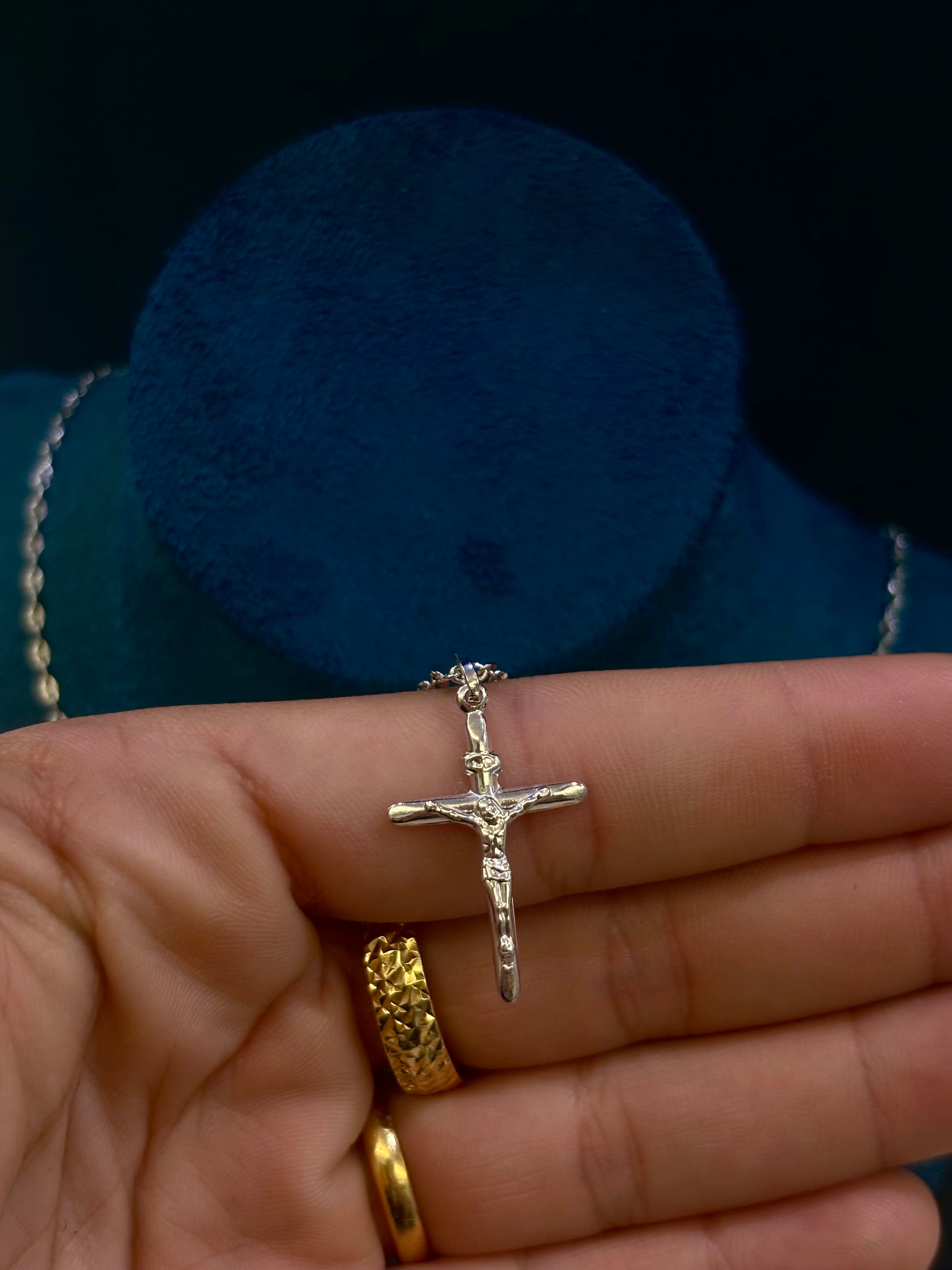 oro bianco con ciondolo crocifisso