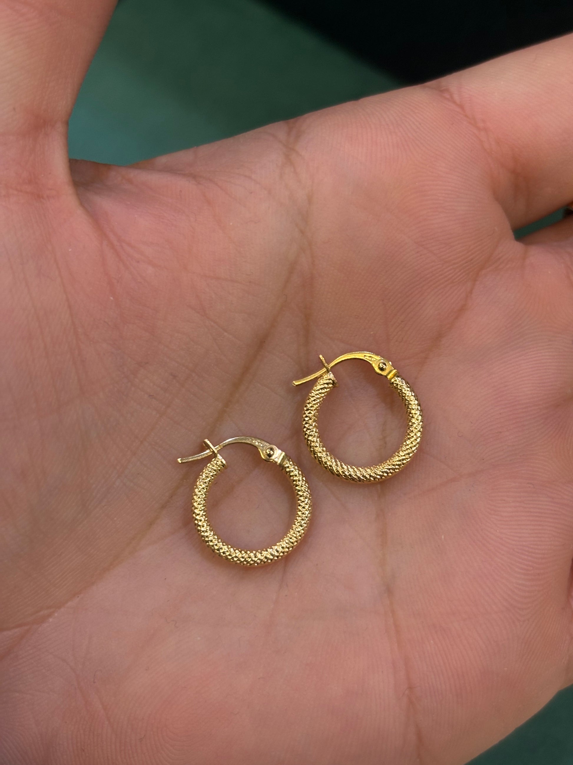 Orecchini Cerchio Diamantati Oro Giallo 18 carati 1 cm