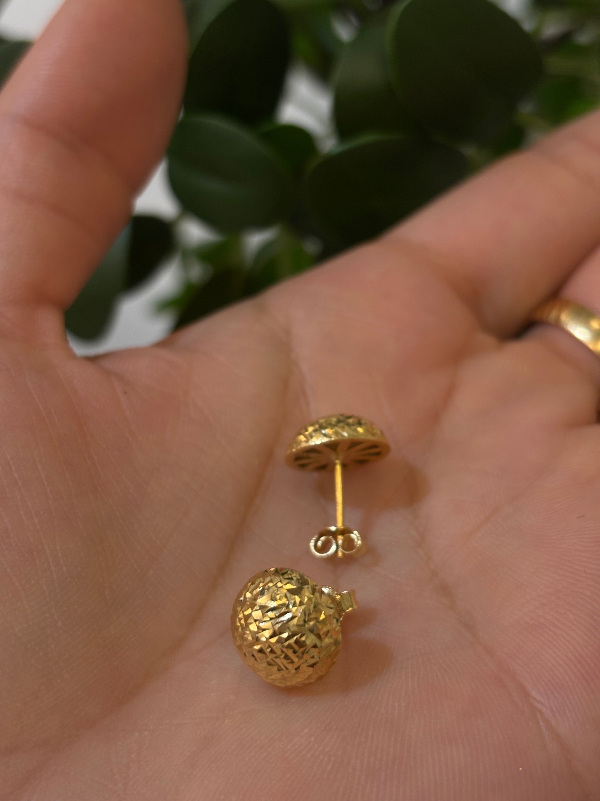 Orecchini Mezza Pallina Diamantata Oro Giallo 18 Carati